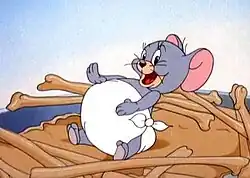 ![]() Nibbles pats in delight after eating a whole turkey in The Little Orphan (1949). | |