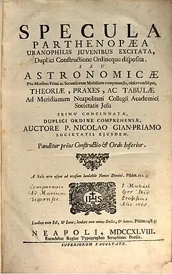 - Specula Parthenopaea uranophilis juvenibus excitata (in Latin). Vol. 1. Napoli: Serafino Porsile. 1748.