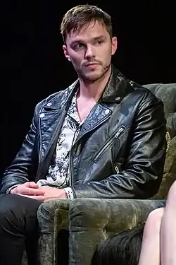 Hoult was cast by filmmaker George Miller, in 2010, to play the character of the manic driver Nux in the action film Mad Max: Fury Road (2015).[100] Nux, another of Hoult's most recognized roles,[101] is described by Hoult as a "he's very enthusiastic and committed and affectionate but also kind of clumsy" character,[102] while Miller describes him as a "quasi-kamikaze" pilot and a slave with a terminal illness.[102] Hoult received praise for his "fabulously unhinged" performance.[103] To portray the role, Hoult shaved his head and followed a strict weight loss diet.[104] The makeup process involved 8 silicone prosthetics, followed by airbrushing, clay application, and several layers of dirt across his body.[105] The makeup had to be applied 77 times, taking 2 hours each time.[105] Hoult spoke about the stunts and action, describing the whole experience as "terrifying,"[106] but favorably comparing the stunt team and the decision to incorporate real action sequences rather than relying on green screen.[106] The director George Miller said about Hoult: "He’s basically one of those actors that ticks every box. Not just his talent, not just his skill level and not just his ability to collaborate under difficult circumstances. But also as a human being. For such a young person, Nick is quite exceptional, mainly in the way that he displays grace under pressure."[107] The project, which spent several years in preproduction due to various difficulties,[108] was finally filmed in 2012 in the Namib Desert and was released in theaters on May 14, 2015. The fourth film in the Mad Max franchise, it starred alongside Charlize Theron and Tom Hardy. The film received critical acclaim and grossed over $378 million worldwide.[109][110] In 2015, Hoult starred in three additional film releases. He appeared in the cinematic adaptation of Gillian Flynn’s mystery novel Dark Places (2015) Hoult portrays Lyle Wirth, a young man who becomes involved in an investigation into a murder that occurred during the childhood of the protagonist, Charlize Theron.[111] His character is connected to a "Real Killers" club dedicated to investigating unsolved crimes.[112]
