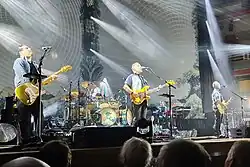 Nick Mason's Saucerful of Secrets made their debut at a sold-out test show at Dingwalls, a 500-seat club in London, in May 2018.[8] This was followed by three small shows at the Half Moon, Putney,[9] a European tour in September 2018,[10] and a North American tour in 2019.[11] On 18 April 2019, Waters surprised the audience at the New York Beacon Theatre by joining the band to sing "Set the Controls for the Heart of the Sun".[3] A 2020 European tour was postponed to April 2022 due to the COVID-19 pandemic.[12][13] A second North American tour was postponed from January 2022 to September.[14]