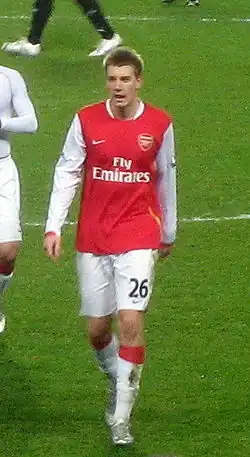 On 24 February, Bendtner was goaded after missing a number of chances in the 1–0 win over Roma in the Champions League knockout stages.[32] The following week, he scored two goals at West Bromwich Albion as Arsenal won 3–1.[33] The fans were much more supportive towards him when he missed a string of chances against Blackburn Rovers.[34] Arsenal still won 4–0, thanks to Andrey Arshavin's stunner, and a brace from Eboué. Bendtner got a goal in a 3–1 win at Newcastle United, a header from a long free-kick.[35]