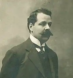 Aside from his departmental activity, Dobrescu held various conferences on church history that were open to the public, including at Iorga's summer university in Vălenii de Munte. He penned criticism of the manner in which bishops were elected, and his writings on canon history were used to draft a new law on the matter in 1909. In July 1911, he was made a full professor.[13] The same year, he was elected a corresponding member of the Romanian Academy.[14] In the autumn of 1913, he began feeling ill and missing courses, and cancer quickly weakened his formerly robust body. He died in tremendous pain the following July, shortly before he would have turned 40, and was buried in Bellu cemetery.[15] His death was deplored by those who knew him, with an obituary penned by Iorga praising his "serious and fecund" education, regretting that "Romanian scholarship has lost one of the most prestigious representatives of its younger generation".[11] In pursuance with his wishes, Dobrescu's personal library was donated to the church history department.[16]