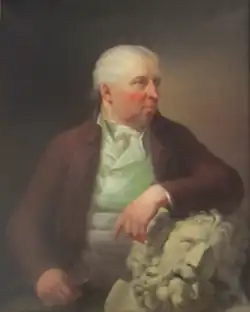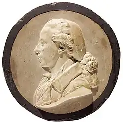 He has also created a number of portrait busts and reliefs. These include a portrait bust of Crown Prince Frederick from 1783 (Sorø Academy). His marble bust of A. P. Bernstorff created for Landhusholdningsselskabet (now Frederiksborg Museum) is believed to be a copy of Bertel Thorvaldsen's Bernstorff bust, although it may also be the other way round.[3] He has for instance created portrait medallions of A. C. Hviid (Regensen), Jens Low-zon (Danish National Gallery) and Christian VII (Christiansborg Court Theatre). A bust of Ludvig Holberg (1784) is now located in the Royal Danish Theatre.