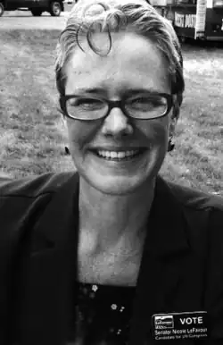 In February 2012, LeFavour announced that they would not be seeking re-election to the state legislature,[18] but announced their candidacy for the United States Congress in Idaho's 2nd District the following month.[19] They challenged seven-term Republican U.S. Congressman Mike Simpson,[20] whom they debated twice[21][22][23] and criticized as being only superficially moderate, citing his vote against discrimination protections for women in the workplace.[24] Had LeFavour been elected, they would have been the second openly lesbian member of the U.S. Congress,[25] but polled 34.8% of the vote.[26] This was in and of itself the strongest showing of any Democratic candidate against Mike Simpson as an incumbent: Craig Williams got 25.9% of the vote in 2000,[27] Edward Kinghorn 29.0% in 2002,[28] Lin Witworth 29.3% in 2004,[29] Jim D. Hansen 34.43% in 2006,[30] Deborah Holmes 31% in 2008,[31] and Mike Crawford 24.4% in 2010.[32] LeFavour noted after the election on the campaign's Facebook page that, as a candidate, they had received the most votes in eastern Idaho of any Democrat who had run against Simpson as an incumbent, and that "last but not least, we've put to rest the question of whether Idahoans will actually vote for a gay person."[33]