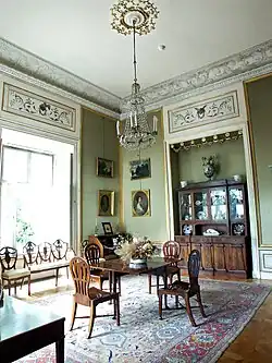 The estate had its prime with various owners – The Great Hetman of Lithuania Michal Kazimierz Oginski (1766–1774) and Michael Hieronim and Helena of Radziwill clan, who was also the creator of nearby Arkadia. During their presence in the mansion, its interior has been pompously furnished with rococo and early classicist ornaments designed by Szymon Bogumił Zug.[6]