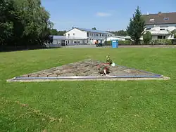 A move to a newly built camp in the Niederhagen suburb of Wewelsburg followed. In September 1941, when the camp became an independent concentration camp under the name Niederhagen concentration camp, 480 prisoners were interned there. From 1941, more and more prisoners from outside Germany were imprisoned in the camp.[2] The approximately 3,900 prisoners included Jehovah's Witnesses, political prisoners, Sinti and Romani people, Yeniche, homosexuals, Jews, prisoners of war and forced laborers from Poland, the Soviet Union (also prisoners of war), Czechoslovakia, France, the Netherlands and Belgium. Almost a third of them did not survive their imprisonment. The deaths of 1,285 prisoners are recorded. They died of hunger, cold, disease and the consequences of ill-treatment. In 1942, a crematorium was built specifically for the camp. The Gestapo also used the camp as a place for executions. A total of 56 people from Westphalia-Lippe, including women and children, were executed there on the orders of Heinrich Himmler.[1] In the period from 1 September 1941 to 1 May 1943, the camp was an independent concentration camp. Before, it had been a satellite camp first of the Sachsenhausen and then of the Buchenwald concentration camp. From 1943, only 50 people were imprisoned at Niederhagen. Eventually, they were liberated by the U.S. army on 2 April 1945. Today, not much is left of the camp; the former camp kitchen houses the local fire station of the volunteer fire department and some apartments, the gatehouse is now a two-family house, while a residential estate was built over the rest of the former camp.