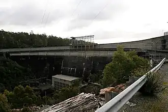 ![]() The Clark Dam wall with the Butler Gorge Power Station located at the wall base. | |