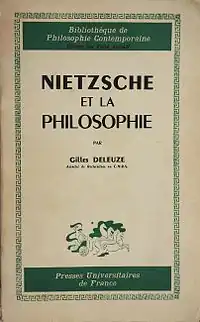 Nietzsche and Philosophy (French: Nietzsche et la philosophie) is a 1962 book about Friedrich Nietzsche by the philosopher Gilles Deleuze, in which the author treats Nietzsche as a systematically coherent philosopher, discussing concepts such as the will to power and the eternal return. Nietzsche and Philosophy is a celebrated and influential work. Its publication has been seen as a significant turning-point in French philosophy, which had previously given little consideration to Nietzsche as a serious philosopher.