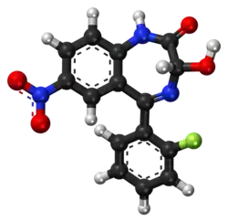 - ^ a b EP 0158267, Posselt K, Wagener HH, Gruber K,, "Pharmaceutical composition containing 5-(2-fluorophenyl)-1,3-dihydro-3-hydroxy-7-nitro- or 5-(2-fluorophenyl)-1,3-dihydro-3-hydroxy-1-methyl-7-nitro-2H-1,4-benzodiazepin-2-one and process for their preparation", published 16 October 1985, assigned to Dolorgiet Beteiligungs-GmbH