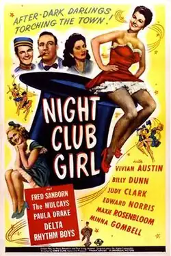Night Club Girl is a 1945 American comedy film directed by Edward F. Cline and written by Henry Blankfort and Dick Irving Hyland. The film stars Vivian Austin, Edward Norris, Maxie Rosenbloom, Minna Gombell, Judy Clark and Bill Dunn. The film was released on January 5, 1945, by Universal Pictures.[1][2][3]