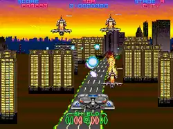The player controls the car and shoots enemies encountered during the stage. Enemies and bosses include helicopters, aeroplanes, lorries, robotic spiders, and boulders. The car can be manoeuvred in a similar manner to Space Harrier and can be moved around the screen. There are 21 stages, although the player only needs to complete six to complete the game. Stages' themes include, factories, tunnels, and city themes such as centres, suburbs, and streets. Certain stages contain obstacles such as barriers which must be manoeuvred around. At the end of each stage, there is a boss,[8] and after its defeat, the player is presented with a choice of route, like Out Run. The car's "armour" refers to its shield capability; the car can absorb a certain number of hits before being destroyed. Defeating a boss gives the shield the capacity to withstand another hit. If the shield has run out and the car is hit, the game is over.[9][10] In certain final stages, the car transforms: depending on the stage, it can become vehicles such as a motorbike or a robot.[11] The game features different endings depending on which route is taken.[2]