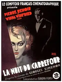 Night at the Crossroads (French: La Nuit du carrefour) is a 1932 French crime film by Jean Renoir, based on the novel of the same title (known in English as Maigret at the Crossroads) by Georges Simenon and starring Renoir's brother Pierre Renoir as Simenon's popular detective, Inspector Maigret.