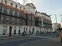 The hospital has its origins in the "Establishment for Gentlewomen During Temporary Illness" founded at Cavendish Square in March 1850.[2][3] On opening, it had 11 beds, and employed nurses as and when required.[1] Florence Nightingale became superintendent in August 1853, a week before it moved to Harley Street, and installed hot water on all floors, and a windlass to deliver hot foods quickly from the kitchen to beds. Under her governance, it was made non-sectarian and renamed the "Institute for Gentlewomen During Illness", taking in widows and daughters of professionals, the clergy and military personnel. She left for the Crimean War the following year.[3][1]