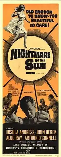 Nightmare in the Sun is a 1965 drama film directed by Marc Lawrence in his feature theatrical directing debut. It stars Ursula Andress, John Derek, and Aldo Ray, with a cameo appearance by Sammy Davis Jr. and an early role of Robert Duvall.