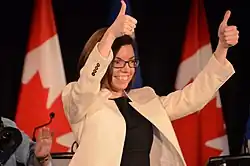 Ashton was re-elected in the 2019 federal election.[19] She was stripped of her critic roles on January 1, 2021, after revealing to the public on Twitter[20] that she had travelled to Greece during the 2020 COVID-19 second wave to visit an "ailing grandmother." She had not informed party leadership of her travel plans beforehand.[21][22] She was re-elected in the 2021 federal election.[23]