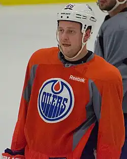 ![]() Nikitin at the 2014 Edmonton Oilers training camp | |||