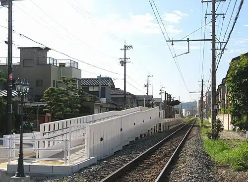 Nikkakagaku-mae Station (日華化学前駅, Nikkakagaku-mae-eki) is an Echizen Railway Mikuni Awara Line railway station located in the city of Fukui, Fukui Prefecture, Japan. The station's name was chosen by employees of Nicca Chemical, which obtained 10-year naming rights to the station for six million yen.