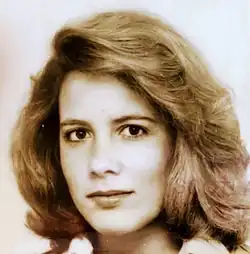 ![]() The photo on her AP press pass in 1979 | |