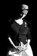 Sani (Macedonian fashion journalist) wearing Eftimov's outfits. Photos by Ivan Blazev, 2003