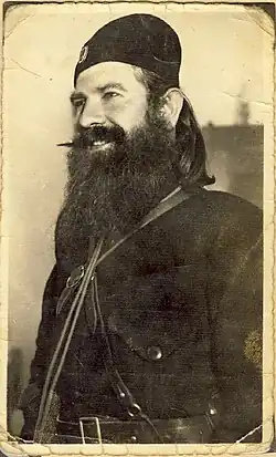 In the night of 25 December 1943, Chetniks under command of Nikola Kalabić killed a large number of civilians in village of Kopljare, near Aranđelovac. Out of 22 killed, 19 were Romani. In a letter to Draža Mihailović, Kalabić wrote: In Kopljere we caught while sleeping and slayed 24 active communists, out of which 20 were Gypsies, who admitted to be so-called jarugaši, at day they do their housework, but at night in action. I killed them all. There is no proof that any of victims were involved with KPJ or involved in any armed fights. Source of Ministry of Interior of quisling government has a more precise description of the massacre, as they mention murder of 22 civilians, 19 Romani, of which 15 male and 4 female. It also mentions that Chetniks burnt all Romani houses, as well as houses of two peasants whose family members were members of partisans.[7] Mountain Guard Corps under Kalabić committed similar acts of terror against pro-partisan population in central Serbia, including massacre in Drugovac, single largest Chetnik massacre in any Serb village.[8] During July and August 1944 Mountain Guard Corps led by Kalabić committed string of robberies and beatings in villages around Prokuplje and in Dešilovac they executed 5 villagers.[9]