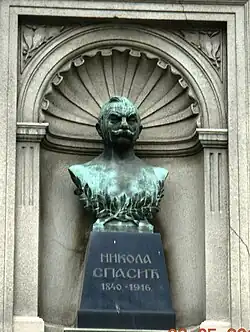 Nikola Spasić (1838—1916) was a Serbian wholesaler, benefactor and a large endower.[4] He was president of the Belgrade Stock Exchange, President of Traffic Bank and member of the management board of the National Bank of the Kingdom of Serbia. He was awarded the Cross of Takovo of the 4th order and the Оrder of St. Sava of the 3rd order.