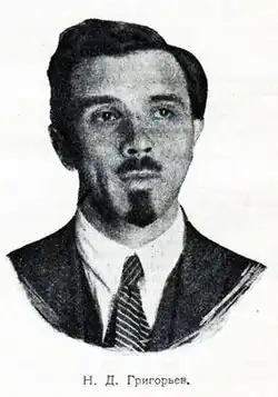 Nikolai (Nikolay) Dmitrievich Grigoriev (Russian: Никола́й Дми́триевич Григо́рьев) was a Russian chess player and a composer of endgame studies. He was born on 14 August 1895 in Moscow, and he died there in 1938.