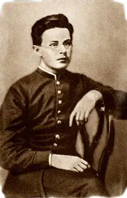 The son of a wealthy landowner and a serf woman who was bonded to his estate, Morozov was born in the village of Borok in the Governorate of Yaroslavl. He was initially educated at home before he started studying at the Second Moscow Gymnasium in 1869.[1] He disliked the curriculum, especially Latin and divine law. He founded an informal self-education circle in natural science. He also attended lectures at Moscow University disguised in a student's uniform. He was expelled from school for distributing a science journal that had not been approved by the censorship division. Showing an early interest in politics, he was on a police watchlist as a student. He joined the Circle of Tchaikovsky and was active in distributing propaganda among peasants in the Moscow, Voronezh, and Kursk governorates before police persecution forced him to return to Moscow. He moved to Saint Petersburg before departing for Geneva in 1874.[2][3]