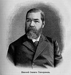 Nikolai Savvich Tikhonravov (Russian: Никола́й Са́ввич Тихонра́вов; 15 October 1832 – 9 December 1893) was a Russian philologist and historian of Russian literature.