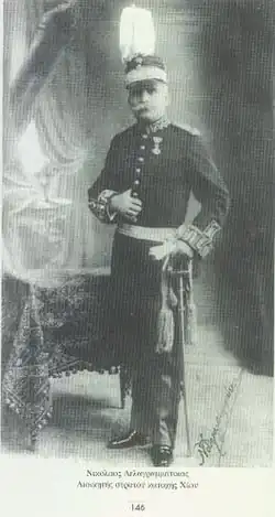 During the 1897 war he was a captain, and distinguished himself through his bravery in the Battle of Velestino, earning a field promotion.[1] On the outbreak of the First Balkan War, he commanded the 7th Infantry Regiment within the Army of Thessaly. Following the capture of Thessaloniki, he led a mixed force of regular and irregular forces to the capture of the island of Chios, which he accomplished against strong opposition by the Ottoman garrison. After the capture of Chios, he and his men were transferred to the Epirus sector, where he led one of the attack columns during the capture of Ioannina.[1] He subsequently served as CO of the 8th Infantry Division and then of the 6th Infantry Division, which he led during the Second Balkan War. He retired on 16 December 1916 with the rank of lieutenant general.[1]