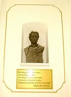 After the Banat was divided into three in 1919 and the Oberrealschule was renamed the Deutsches Staatsgymnasium ("German State High School"), German was introduced as the language of instruction, with a Hungarian section until 1927. From 1941 to 1944, the German girls' high school operated in the high school building, and in 1942 the school was named "Nikolaus Lenau", after the Banat-born Austrian poet.[8] For a brief period, starting with 1952, it has been called the Boys' High School no. 2. Between 1952 and 1955, the Faculty of Labor functioned in the high school building.[8]