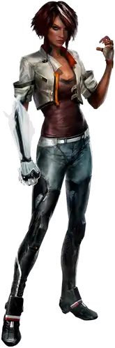 As introduced in Remember Me, Nilin is the daughter of the founders of Sensen technology, Charles and Scylla Cartier-Wells. After being in a car crash that injured and embittered her mother, her father designed the Sensen to help Nilin forget her part in it.[9] Nilin becomes a memory hunter, someone who can enter and steal memories: because of skills taught to her by her father, she could also 'remix' them to create a false memory and potentially change a person's outlook and future actions. Under unknown circumstances, she joins the Errorists, an underground movement opposed to the Sensen technology.[10] After she manipulates a target into committing suicide, she is imprisoned in the Bastille and her memories erased. The unseen Errorist leader Edge breaks her out of prison and acts as her guide and helper during her missions. Nilin follows his orders in order to recover her lost memories, although she finds herself doubting herself and fearing recovering her memories because of what more she might have done.[11] Eventually, she finds out her origins, and ends up remixing the memories of her parents to make them see the harm the technology is causing and allow Nilin entrance to H3O, the Memorize central server and the core of the Sensen technology.[12] When she reaches the Central Server, Edge confirms her growing suspicion that he and H3O are one and the same, and that he led her all the way to the central server for the expressed purpose of having her kill him.[13] Due to common use of Sensens to remove painful memories from their human users, the H3O computer had essentially become a horrific repository of countless negative memories and experiences; when it unexpectedly gained self-awareness, it found itself experiencing incredible suffering, leading to its wish to be destroyed. Nilin links mentally with the server and is confronted by H3O, a sentient entity that had developed in the Memorize servers from the vast collection of painful memories, who informs her that Edge was an aspect of him, created and released into the world specifically to bring down Memorize by organizing the Errorist movement, and in the process, put an end to H3O. He also tells her that as long as he exists the horrors of Sensen abuse will continue until they eventually overwhelm the entire population, meaning that Nilin must destroy H3O. When Nilin expresses reluctance at the prospect of killing him, H3O spawns multiple hostile remembrances to force her to fight him. Nilin finally destroys Edge/H3O, releasing the stored memories into the general population. In his last moments, H3O thanks her for putting an end to his pain. With her mind now restored, Nilin resolves to help heal the damage Sensen has done to the world.[14]