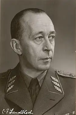 Björk served in Värmland Regiment (I 2) in 1942[4] and was promoted to colonel in 1942 and then served as commander of Norrbotten Regiment (I 19) from 1942 to 1946. In 1944, he served as chief of the Evacuation Staff during the evacuation from northern Finland in 1944.[2] Björk served as commander of Skaraborg Regiment (P 4) from 1946 to 1948. He was then colonel in the General Staff Corps and head of Section 2 of the Army Staff from 1948 to 1951 when he was promoted to major general. Björk then served as Commanding General of the VI Military District from 1951 to 1963 when he retired and was promoted to lieutenant general on the reserve list.[1]
