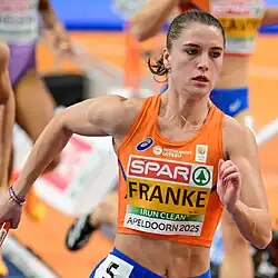![]() Nina Franke at the 2025 European Indoor Championships in Apeldoorn, Netherlands | |||||||||||||||