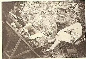 ![]() Robert Burnier, Pierre Vellones both left and René Milan in hat. In the foreground,, Marie-Louise Casadesus and Nina Myral. | |
