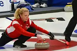 ![]() Roth delivers a stone at the 2015 U.S. Championship | |