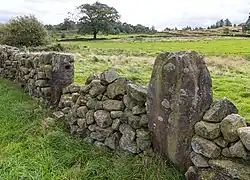 The circle once measured 13.7 metres in diameter.[2] As of 1847, there were seven stones recorded as part of the circle,[2] although by the early 21st century only four remained.[2][15] These are among the largest to be found in any stone circle in Derbyshire.[16] The archaeologists Graeme Guilbert, Daryl Garton, and David Walters described these as an "imposing group,"[17] while Burl characterised the monument as an "impressive site".[2] One of the stones was removed in the 18th century and is now used as an oversized field gatepost nearby.[15] Another long, prostrate stone lies in a field 230 metres to the north-west.[2]