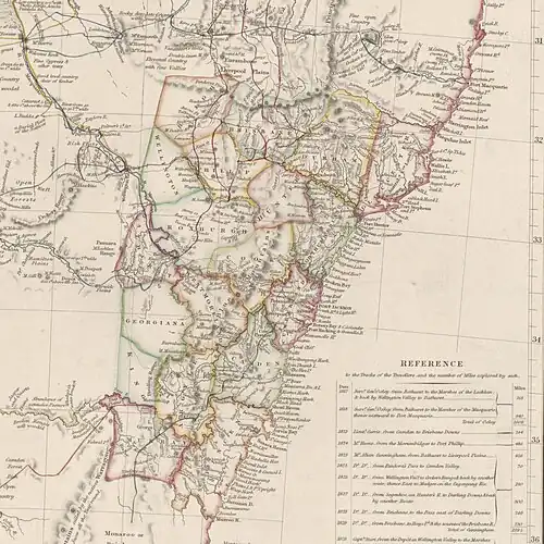 The Nineteen Counties were mapped by the Surveyor General Major Thomas Mitchell in 1834. The scale of the map that Mitchell produced was determined by the amount of ship's copper available in Sydney to engrave the map.[1]