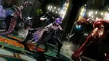 The game features online cooperative gameplay mode, with new playable characters, such as the female ninja Ayane, was revealed in a preview of the game at the Nintendo of America Wii U press conference in New York. She has her own set of moves, similar to her Ninja Gaiden Sigma 2 iteration, with additional cutscenes produced for her added role. A new Chapter Challenge mode allows the player to control Ayane, as well as additional DLC characters Kasumi and Momiji, in any part of the game.[2][3]