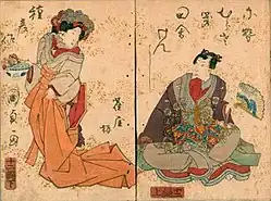 Nise Murasaki inaka Genji (偐紫田舎源氏), translated variously as The Rustic Genji, False Murasaki and a Country Genji, or A Fraudulent Murasaki's Bumpkin Genji, is a late-Edo period Japanese literary parody of the Tale of Genji by Murasaki Shikibu.[1][2][3] The work, by Ryūtei Tanehiko (柳亭種彦) (1783–1842) with illustrations by Utagawa Kunisada, was published in a woodblock edition between 1829 and 1842 by Senkakudō.[3]