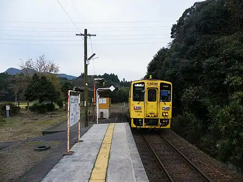The station is served by the western section of the Chikuhi Line and is 6.6 km from the starting point of this section at Yamamoto.[3]