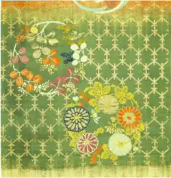 Following the end of the war in the 1480s, the residents of Kyoto returned home,[4] establishing residence on the Western side of Kyoto; this area of settlement was named Nishijin, meaning 'Western position', after the land that the residents had settled on, which had been the location – literally, the Western position – occupied by the army of Yamana Sozen during the war.[5] Another group established residence in the Northern portion of Kyoto, in the location of the modern-day Shinmachi district; this Northern group became known for producing nerinuki, a shimmering fabric made from raw silk and scoured silk that became essential to the tsujigahana fabric dyeing technique.