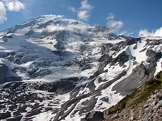 The Nisqually Glacier is one of the larger glaciers on the southwestern face of Mount Rainier in the U.S. state of Washington. The glacier is one of the most easily viewed on the mountain, and is accessible from the Paradise visitor facilities in Mount Rainier National Park. Nisqually Glacier is the source of the Nisqually River.[1]