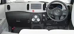 Seating capacity remains at five. According to Nissan designers, the interior is inspired by the 'enveloping curves of a jacuzzi to promote a comfortable and social atmosphere.' Design cues include a water-ripple motif that appears in the headliner and is repeated in details like the speaker covers and cup holders. Nissan has developed an extended line of accessories for Cube to encourage personalization. These include multicolour appliqués that can be placed around air vents and window switches, utility hooks and elastic bands in different colours, variable colour LED accent lighting for the footwell and cup holders, and a sculptured piece of colour-coordinated shag carpet that sits in a shallow well on the top of the dash.[7]