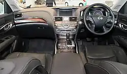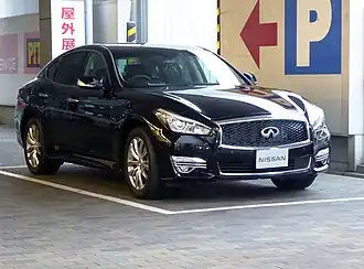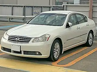 The Nissan Fuga (Japanese: 日産・フーガ Nissan Fūga) is a mid-size luxury sedan produced by Japanese automaker Nissan from 2004 till 2022. It is built on a wider, stretched wheelbase version of the Nissan FM platform.[1] After the Nissan Cima and Nissan President were discontinued in August 2010, the Fuga became Nissan's flagship vehicle. In North America and Europe, the Fuga was sold as the second and third-generation Infiniti M and Infiniti Q70, where it was the flagship sedan of the Infiniti luxury division of Nissan from 2006 to 2019. In 2022, the Fuga was discontinued alongside the Cima, leaving the Skyline as Nissan's sole sedan offering in Japan.