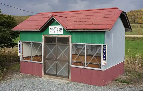 The station above-ground station with one side platform on the right hand side of the single track when facing towards Wakkanai. The station is unattended.