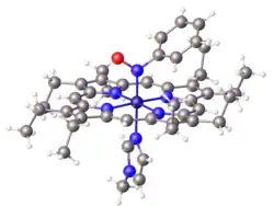 - ^ Godbout, Nathalie; Sanders, Lori K.; Salzmann, Renzo; Havlin, Robert H.; Wojdelski, Mark; Oldfield, Eric (1999). "Solid-State NMR, Mössbauer, Crystallographic, and Density Functional Theory Investigation of Fe−O2and Fe−O2Analogue Metalloporphyrins and Metalloproteins". Journal of the American Chemical Society. 121 (16): 3829–3844. doi:10.1021/ja9832820.