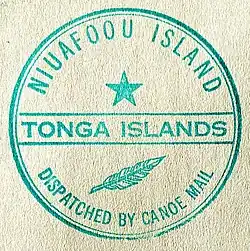 By 1912, the difficulty of ships landing had seen the inhabitants implement a "tin can mail service", with mail sealed in a biscuit or kerosene tin thrown overboard from passing ships and collected by swimmers.[6][32] The popularisation of this method to stamp collectors led to Niuafoʻou becoming known as "Tin-can islands" for many years.