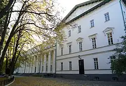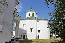 Architecturally Nizhyn was shaped in the 18th century. Foremost among its buildings must be mentioned its seven Baroque churches: Annunciation Cathedral (1702–16, modernised 1814), Presentation Cathedral (1788), St. Michael's Church of the Greek community (1719–29), St John's Church (1752, illustrated, to the right), Saviour's Transfiguration Church (1757), Intercession Church (1765), and the so-called Cossack Cathedral of St. Nicholas (1658, restored 1980s), a rare survival from the days of Nizhyn's Cossack glory, noted for its octagonal vaults and drums crowned by archetypal pear-shaped domes.[12] Other notable buildings include the Trinity Church (1733, rebuilt a century later), the Greek magistrate (1785), and the Neoclassical complex of the Nizhyn Lyceum (designed by Luigi Rusca, built in 1805–17, expanded in 1876–79).