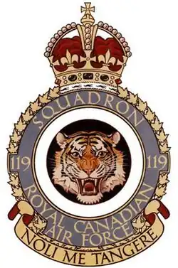 - ^ Public Register of Arms, Flags and Badges, NO. 119 (BOMBER RECONNAISSANCE), Ottawa, Ontario. Confirmation of the blazon of a Badge: November 20, 2008, Vol. V, p. 366. See: http://reg.gg.ca/heraldry/pub-reg/project-pic.asp?lang=e&ProjectID=1378&ProjectElementID=6655 Accessed 18.01.2017