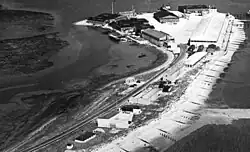 Two unfinished Saunders-Roe Princess flying boats, designed to carry 100 passengers and with a range of 5000 miles, were cocooned at RAF Calshot, near the island hangar during the 1950s and 1960s, before being scrapped.[9] The third one was cocooned at Cowes.